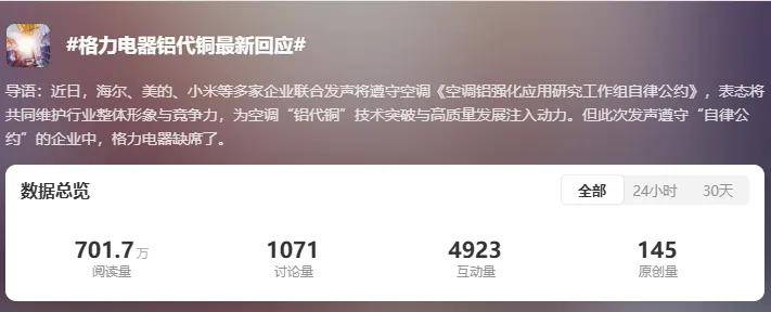 而随后,关于格力缺席这一公约的话题冲上热搜,格力也作出回应,目前没有铝代铜计划。