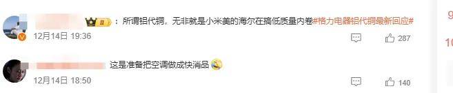 有网友认为,“所谓铝代铜,无非就是搞低质量内卷”,还有人认为,这是准备把空调做成快消品……